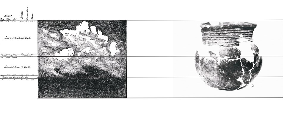 A medida que esa persona moldea las paredes de la vasija, la humedad dentro de la arcilla se evapora y la arcilla se vuelve más firme, pierde su plasticidad, pero ahora es capaz de soportar el peso de otras capas en sus paredes. El constructor de las vasijas maneja las extensiones horizontales y verticales de la forma a través del espacio, equilibrando el contenido y la evaporación de la humedad en la arcilla, por tanto, los contornos de la vasija están íntimamente relacionados con el clima.