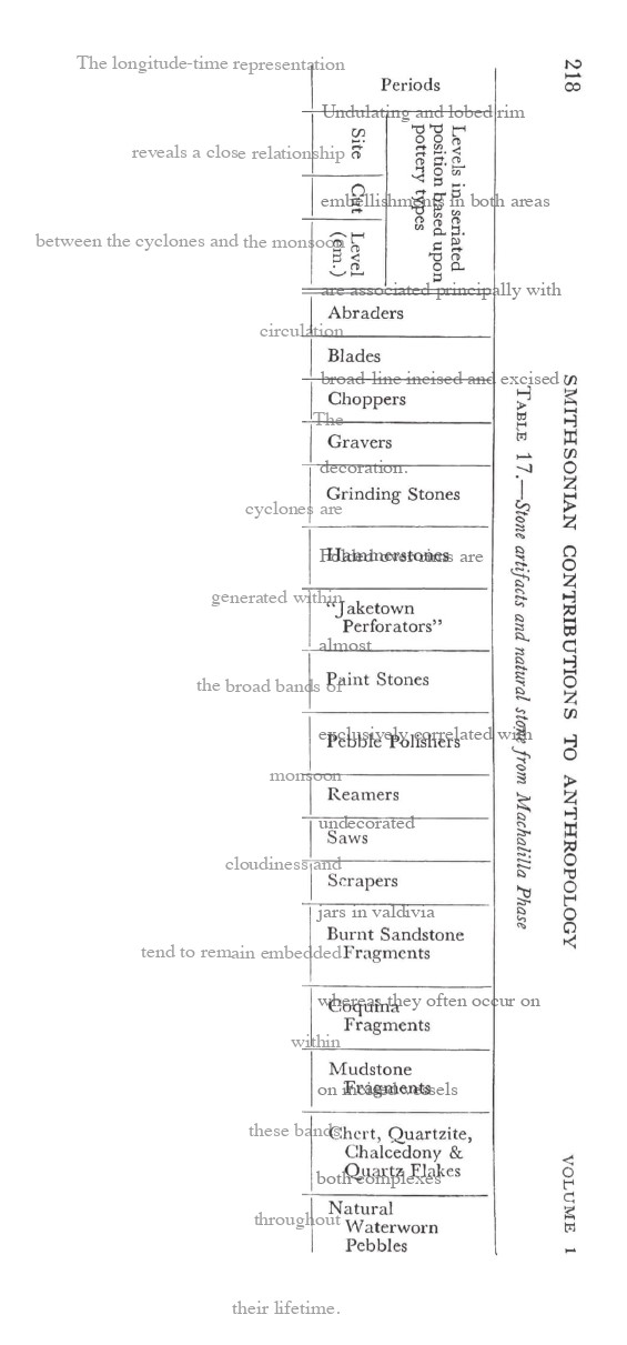 Ahora podemos también incorporar estos nuevos conjuntos de datos meteorológicos en nuestros esfuerzos para trazar desde la curvatura de un fragmento de cerámica Valdivia hasta la representación precisa de una sola nube –su altura, brillo, contenido de humedad, velocidad o dirección de viaje–, tal como pudo haber ocurrido sobre un asentamiento Valdivia hace 5000 años.